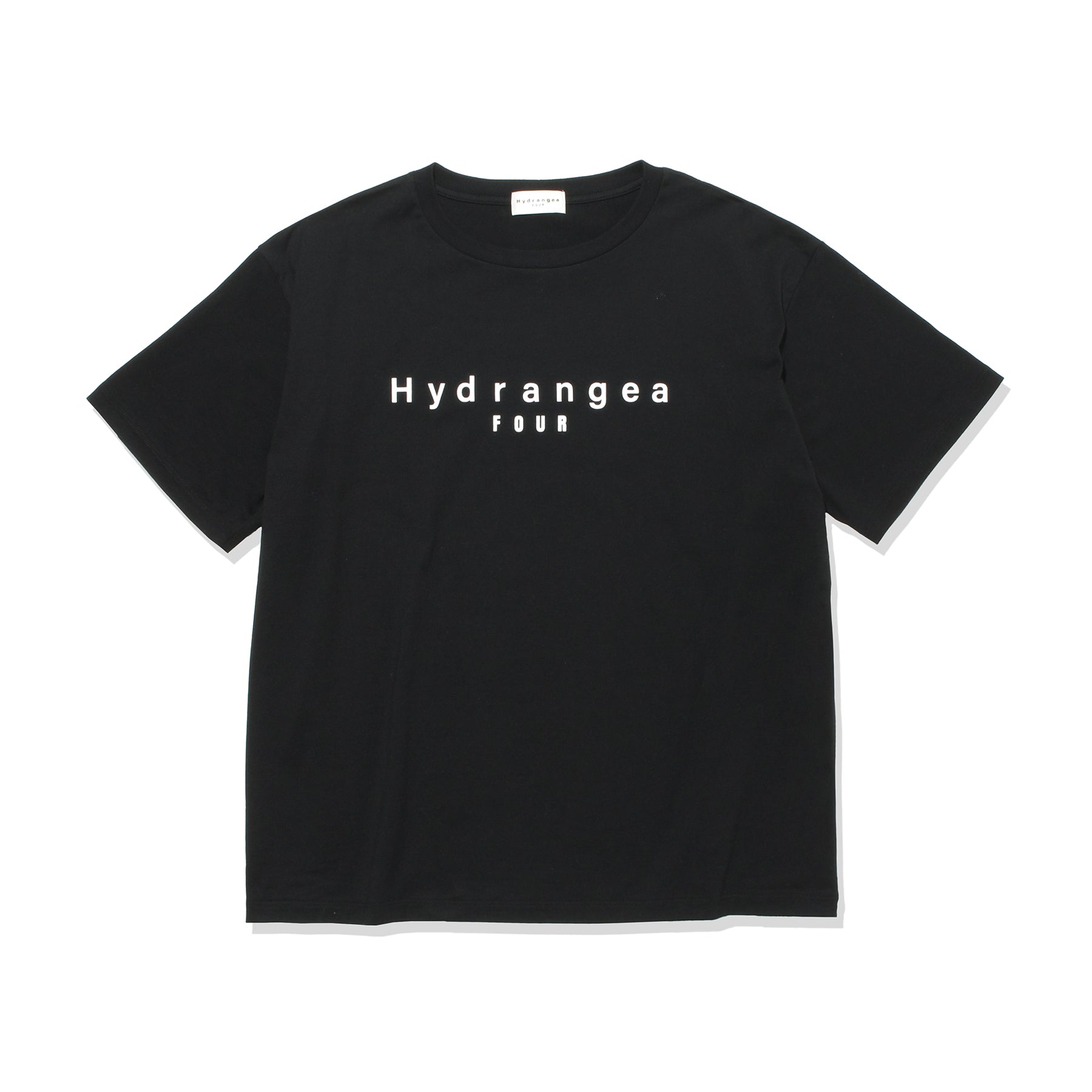 「Four Hydrangea」のロゴを敢えて「 Hydrangea Four 」に逆転させフロントにデザインしたモダンかつアイコニックなTシャツ。