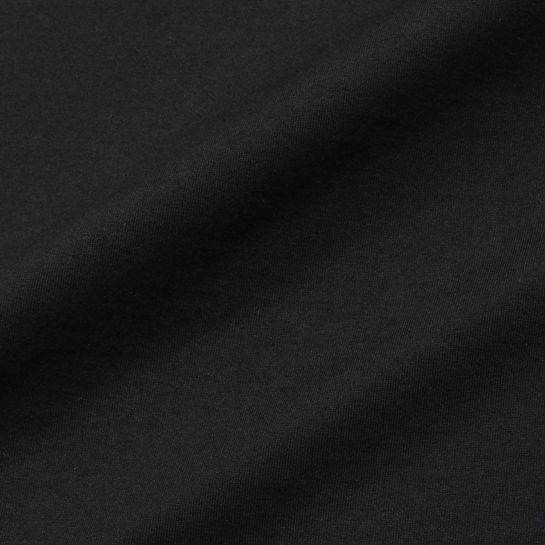 一番に拘ったのは、勿論素材選び。ラグジュアリーブランドも使用する数多くの極上素材の中から光沢感が美しい厳選された超長綿をピックアップ。さらに、ストレスフリーの滑らかな肌触りとリッチな見た目を追求し、ベーシックな天竺に編立てた上で、限界まで表面の毛羽をそぎ落とす特殊加工を施しました。
