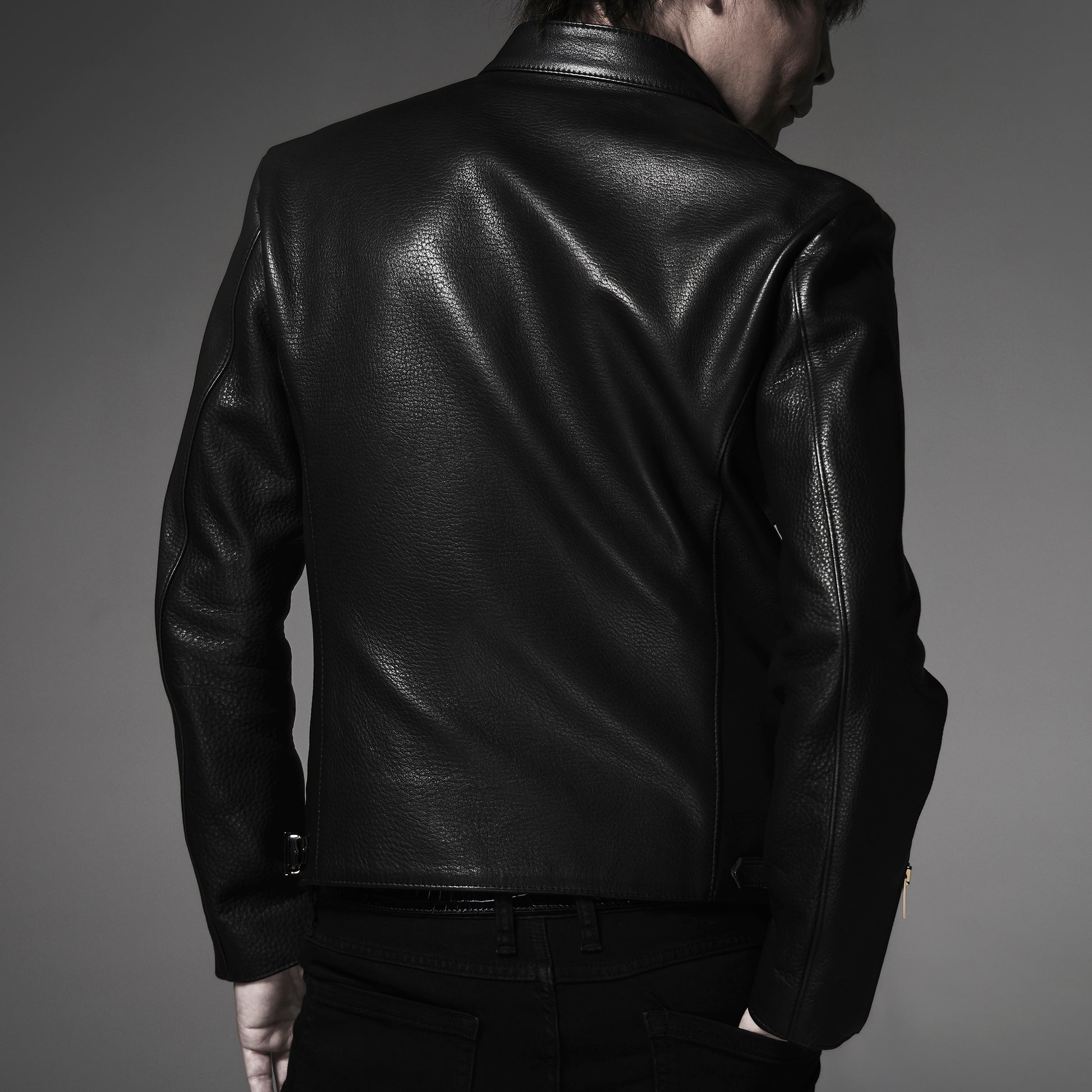 ライダースジャケットのもつ特有の無骨さの中に、シャープなシルエットが浮かび上がる“世界最高峰のフィッティング”を実現するために一年以上何度も試作を繰り返し、エレガントなテーラードJKを纏うかのような、究極の着心地に辿り着いた。