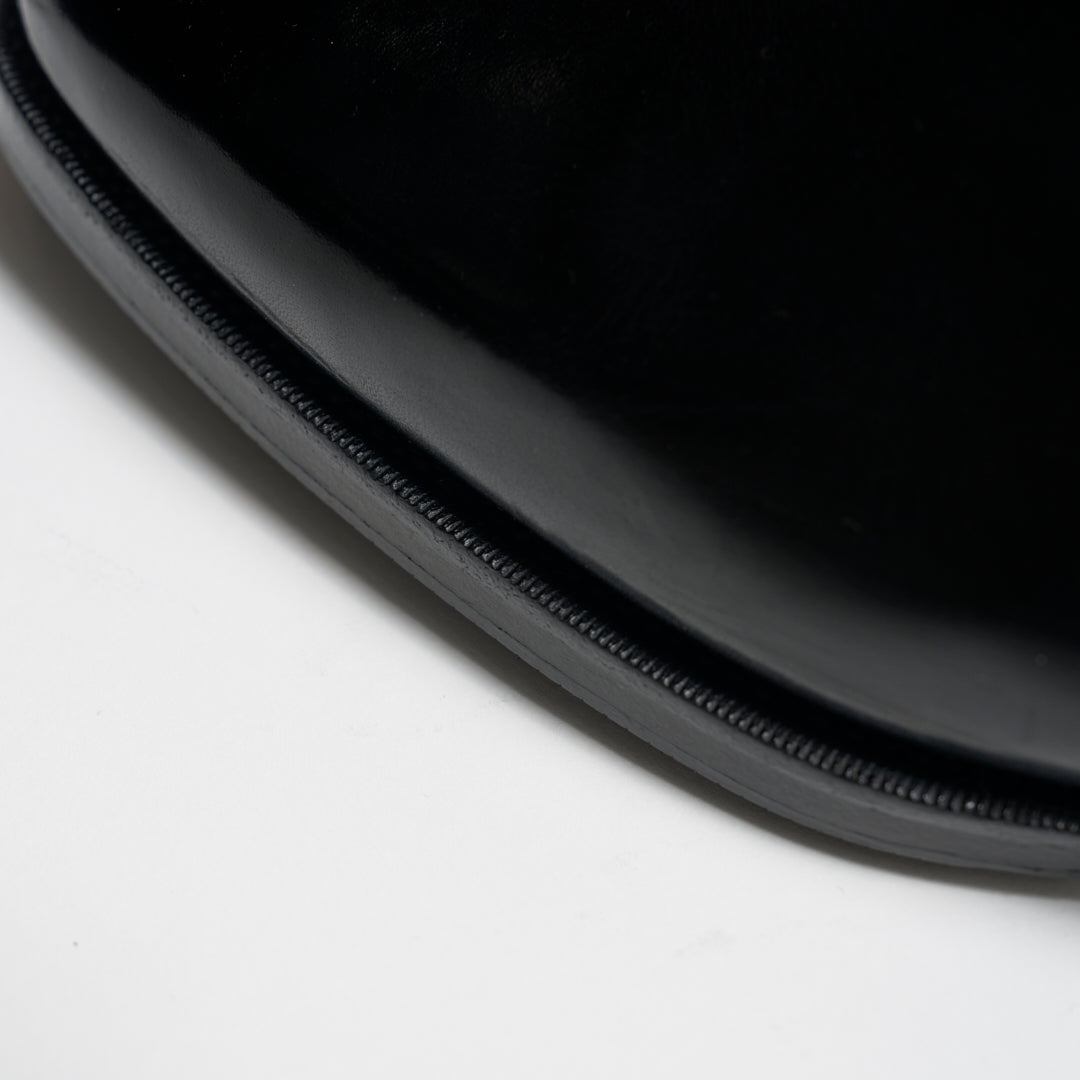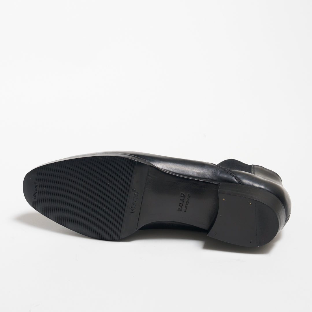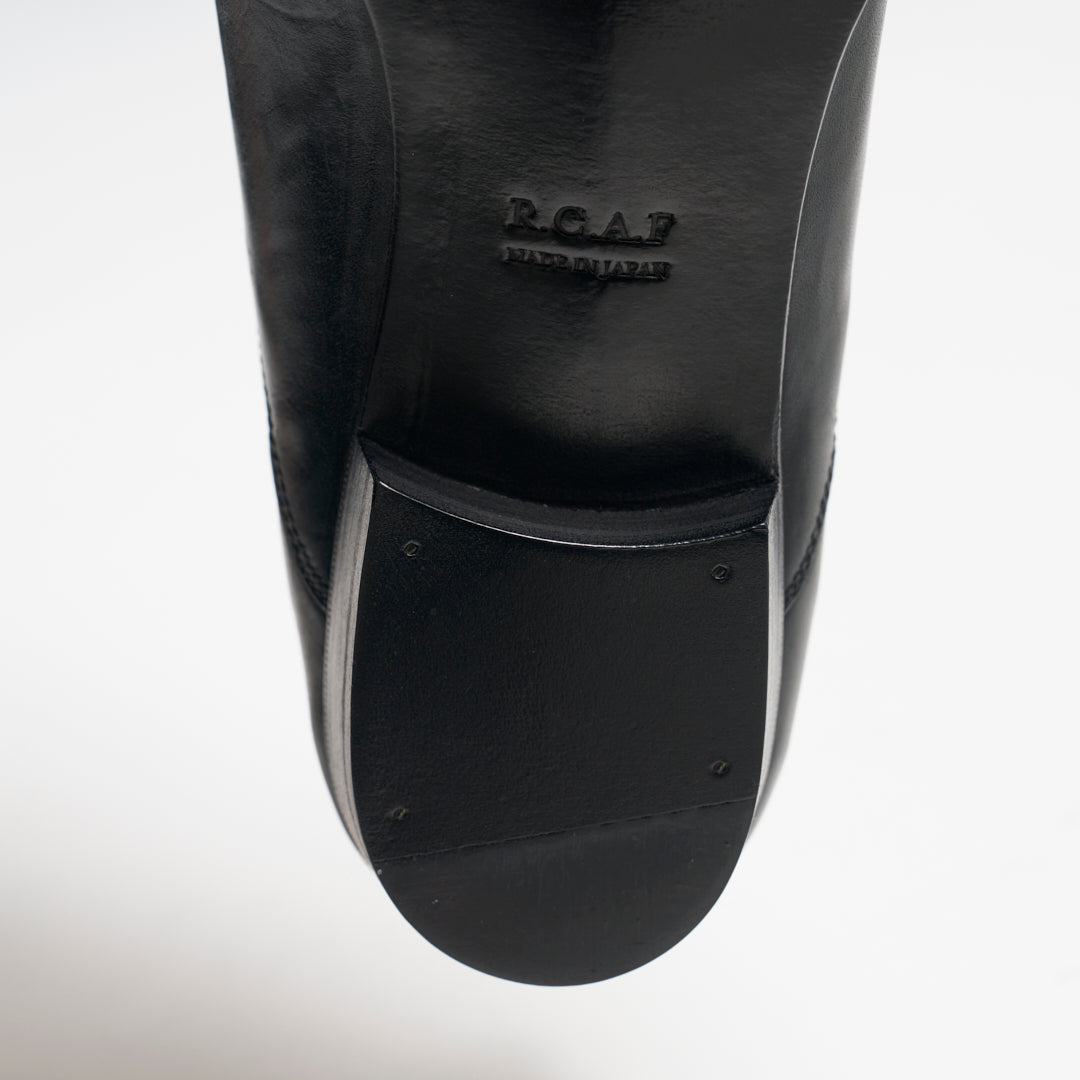 製法、グッドイヤーマッケイ製法、ヒドゥンチャネル、ピッチドヒール、オールBLK仕様。前底には、ビブラムを貼り、滑り止め効果も。