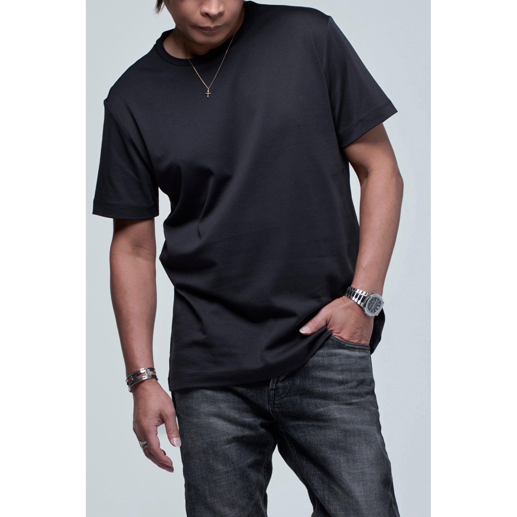 世界3大綿の1つである高品質なSUPIMA®コットンの超長綿100%を使ったハイゲージで編み立てたジャージー生地。シルクのような肌触りと見た目の美しさ、伸縮性による着心地の良さは、シンプルだからこそ、その差が歴然。適度な厚みを出すことで、透けにくい生地に仕上げています。